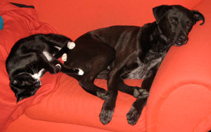 Pedro is the most recent addition to our animal family and has proven no exception to the personality rule. We found him at the Animal Welfare League as a three month old kitten, terrorising his brother in the cage they shared. I must admit that being black was the first thing that attracted us to him – it wasn’t a pre-requisite, but it just seemed nice and neat to have three black animals in the family – and that’s what got us in the cage with him.